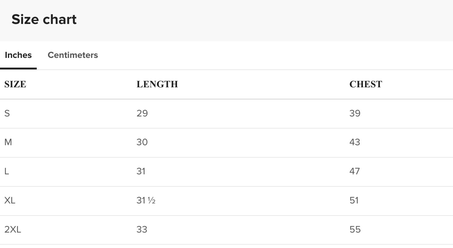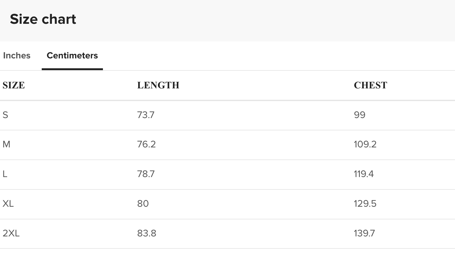 | SIZE | YOUR BODY LENGTH (inches) | YOUR BODY WIDTH (inches) |
